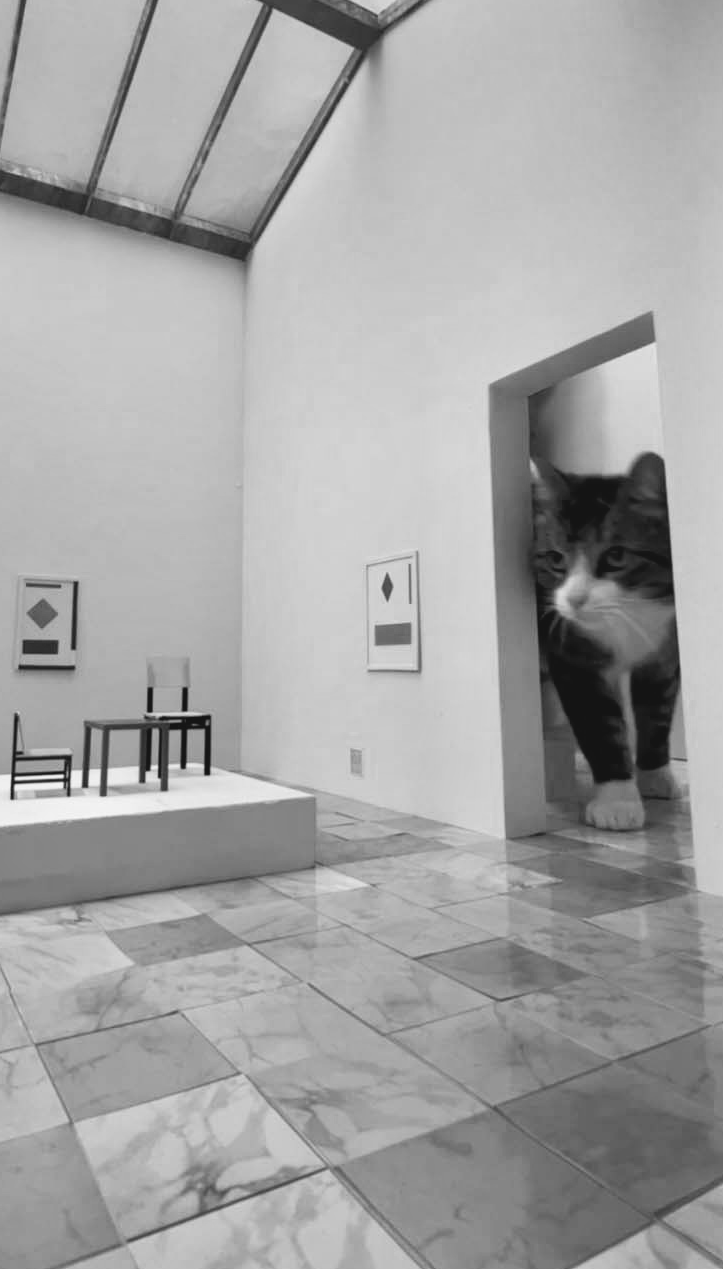 das modell ‚museum insel hombroich‘ orientiert sich an einem maßstab von etwa 1:20 – „etwa“, weil fotorealistische maßstäbe immer ein spiel der annäherung sind. durch die perspektivische verzerrung der kamera entsteht kein absoluter maßstab, sondern ein interpretierter. alle proportionen wurden daher sorgsam aus dem original heraus geschätzt und räumlich neu übersetzt. die möbel sind eigens 3d-gedruckt, der modellkörper aus mdf gefertigt, der boden mit fotopapier beklebt. die dachkonstruktion ist aus holzstäben gearbeitet. so wird das modell zum mittel, die fotografie zum ziel: sie zeigt den raum so, wie er im maßstab erst sichtbar wird.